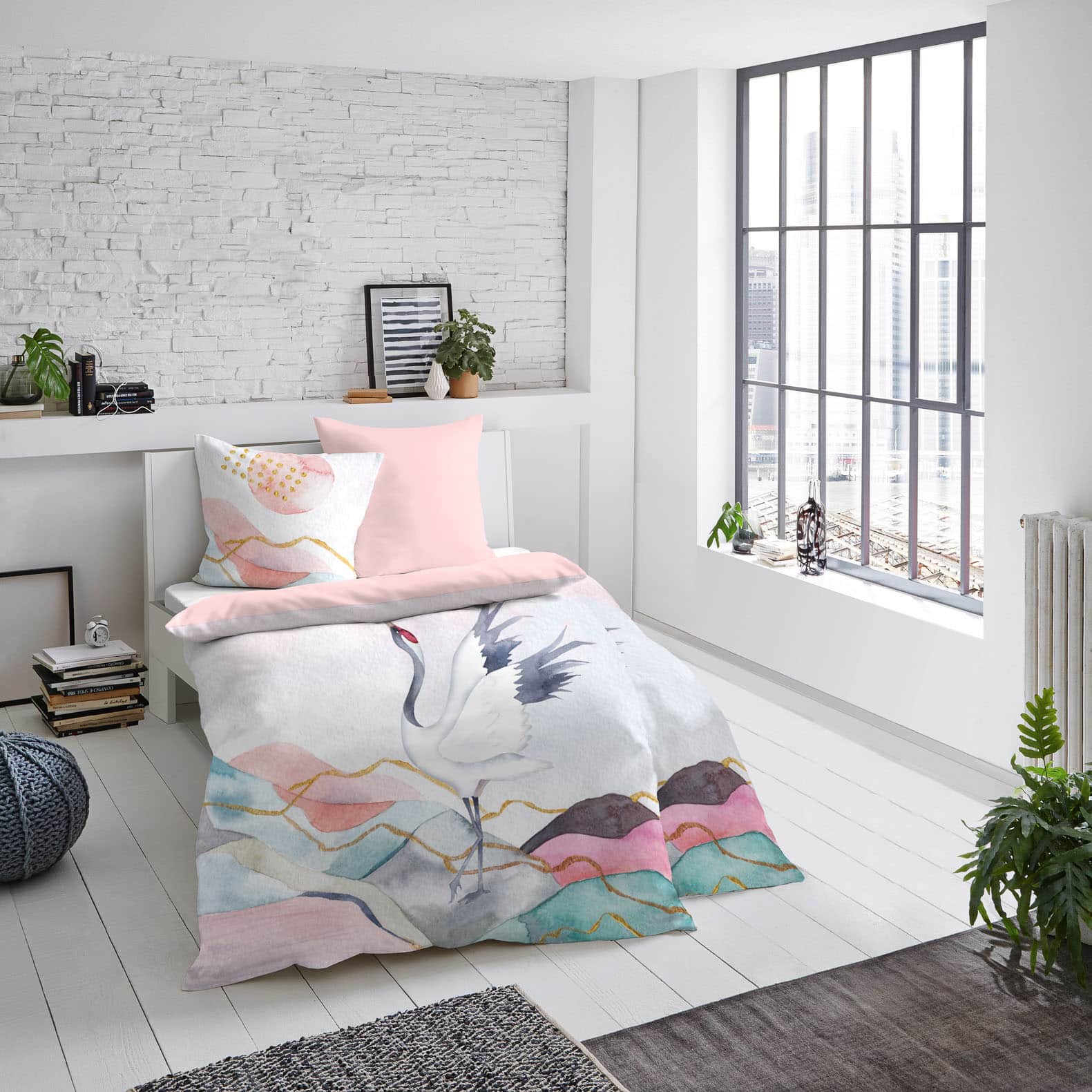 Diese hochwertige Design-Bettwäsche aus 100% Mako-Baumwolle der Marke Dormisette des deutschen Herstellers Wülfing besticht durch ihr stilvolles Design. Das asiatische Kranich-Motiv aus der Kollektion "Famality" ist hochwertig digital aufgedruckt und überzeugt bei der richtigen Pflege mit langanhaltend frischen Farben.