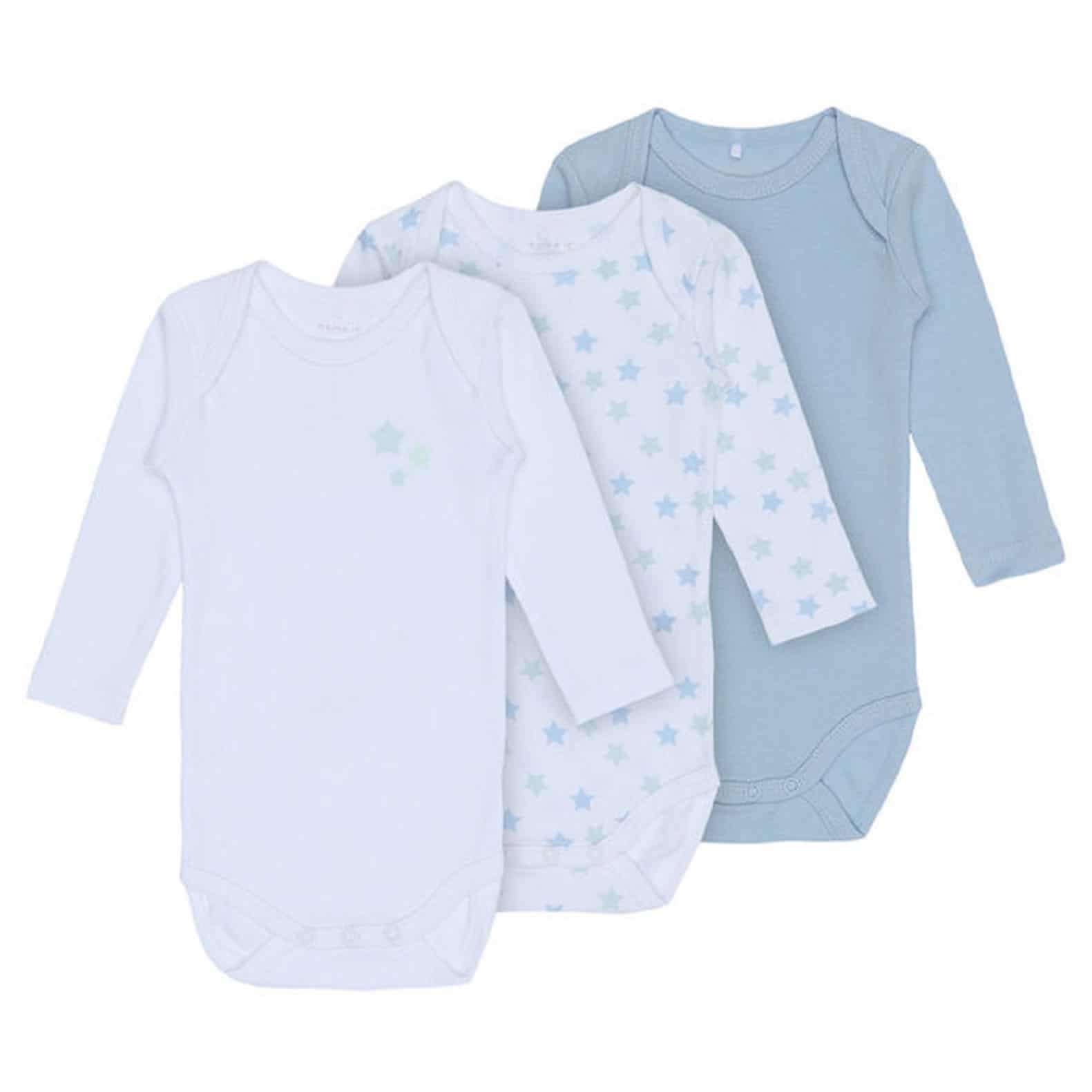 NAME IT 3er Pack Baby-Jungen Langarm Bodies "Sterne" in Hellblau