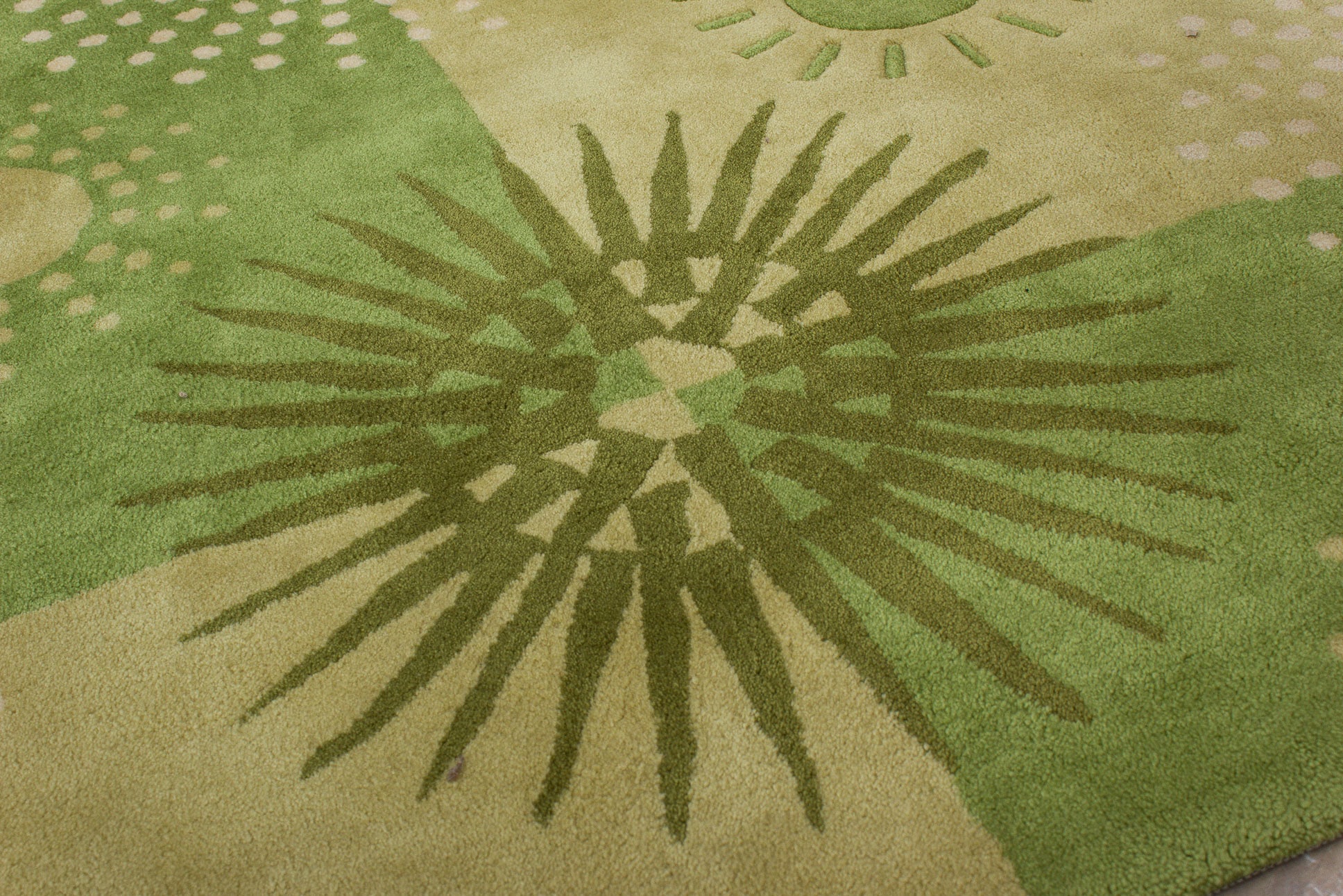 Dieser neue handgetuftete Teppich hat eine Breite von 150 cm und eine Länge von 200 cm. Das Circa-Maß dieses Teppichs ist 150 x 200 cm. Es handelt sich um einen handgetufteten Teppich aus Europa. Der Teppich hat keine Fransen. Der Flor ist aus Schurwolle. Das Muster ist Modern. Dieser Teppich ist für die Nutzung auf Fußbodenheizungen geeignet.