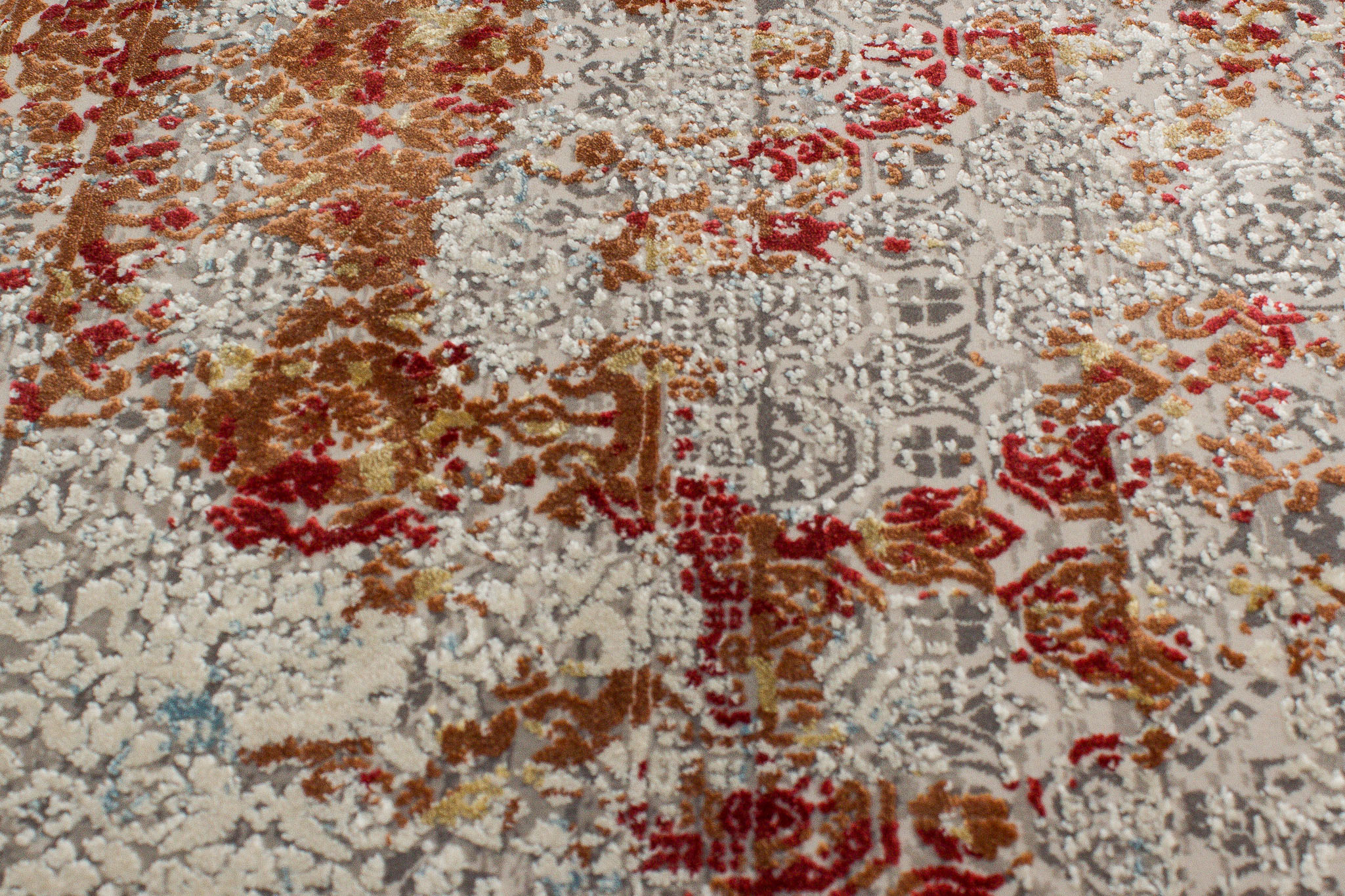 Dieser neue maschinell hergestellte Teppich hat eine Breite von 200 cm und eine Länge von 290 cm. Das Circa-Maß dieses Teppichs ist 200 x 290 cm. Es handelt sich um einen maschinell hergestellten Teppich aus der Türkei. Der Teppich hat Fransen. Der Flor ist aus Viskose (Kunstseide). Das Muster ist Vintage. Dieser Teppich ist für die Nutzung auf Fußbodenheizungen geeignet.