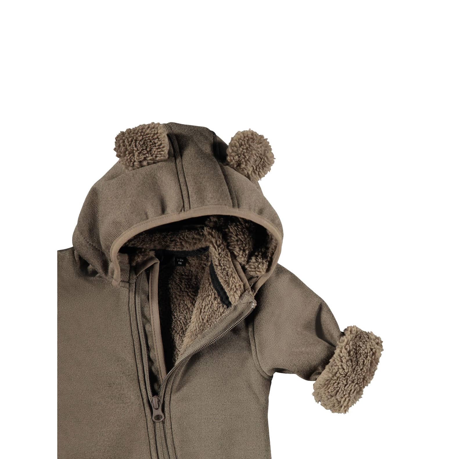 Weicher und warmer Regen-Overall für die Übergangszeit für Ihren Schatz. Innen eine weiches, wärmendes Futter in Schafwoll-Optik und die Außenseite strapazierfähig, wasserabweisend und winddicht. Eine Teddy-Applikation auf der Brust und die süßen Teddy-Ohren an der Kapuze runden den Look ab.