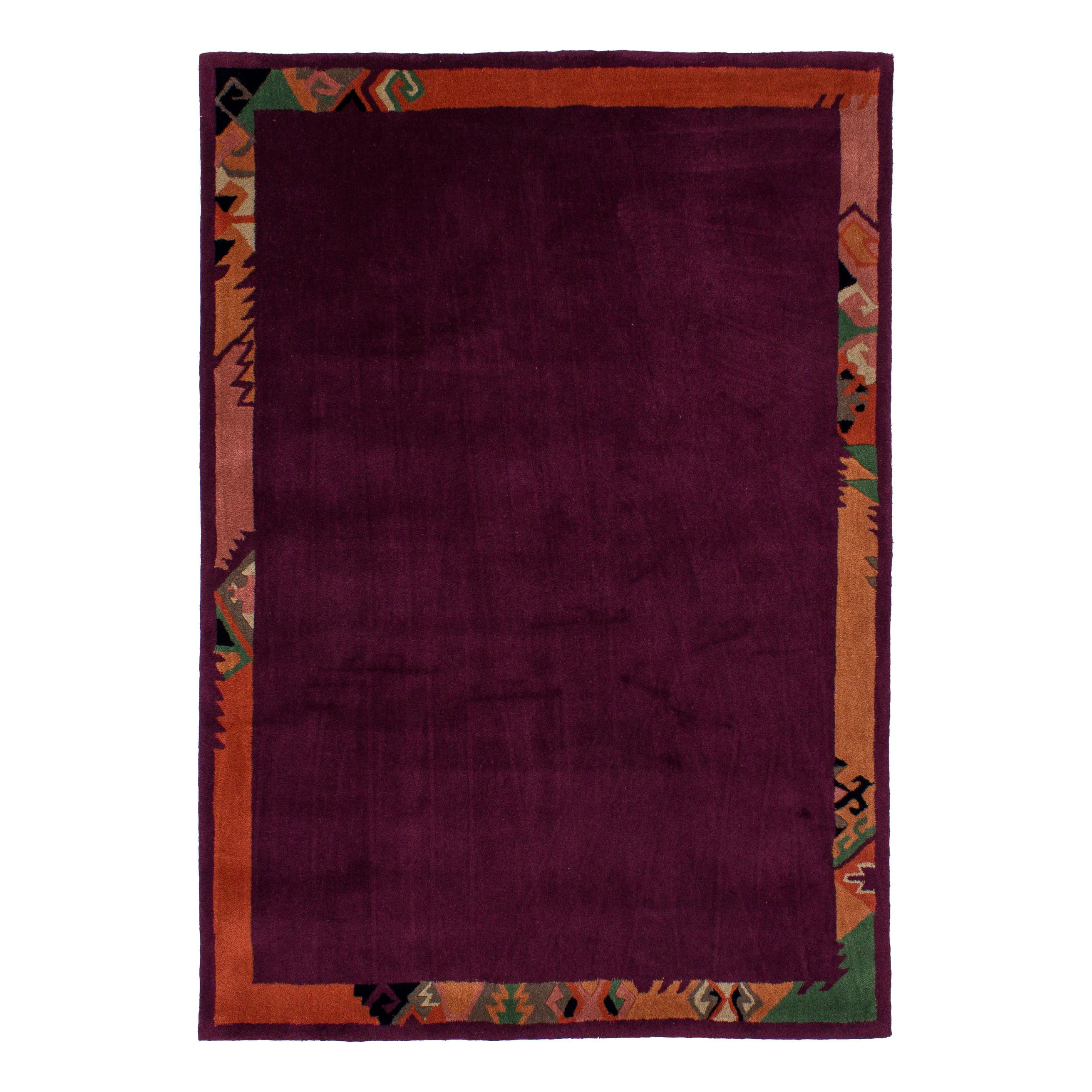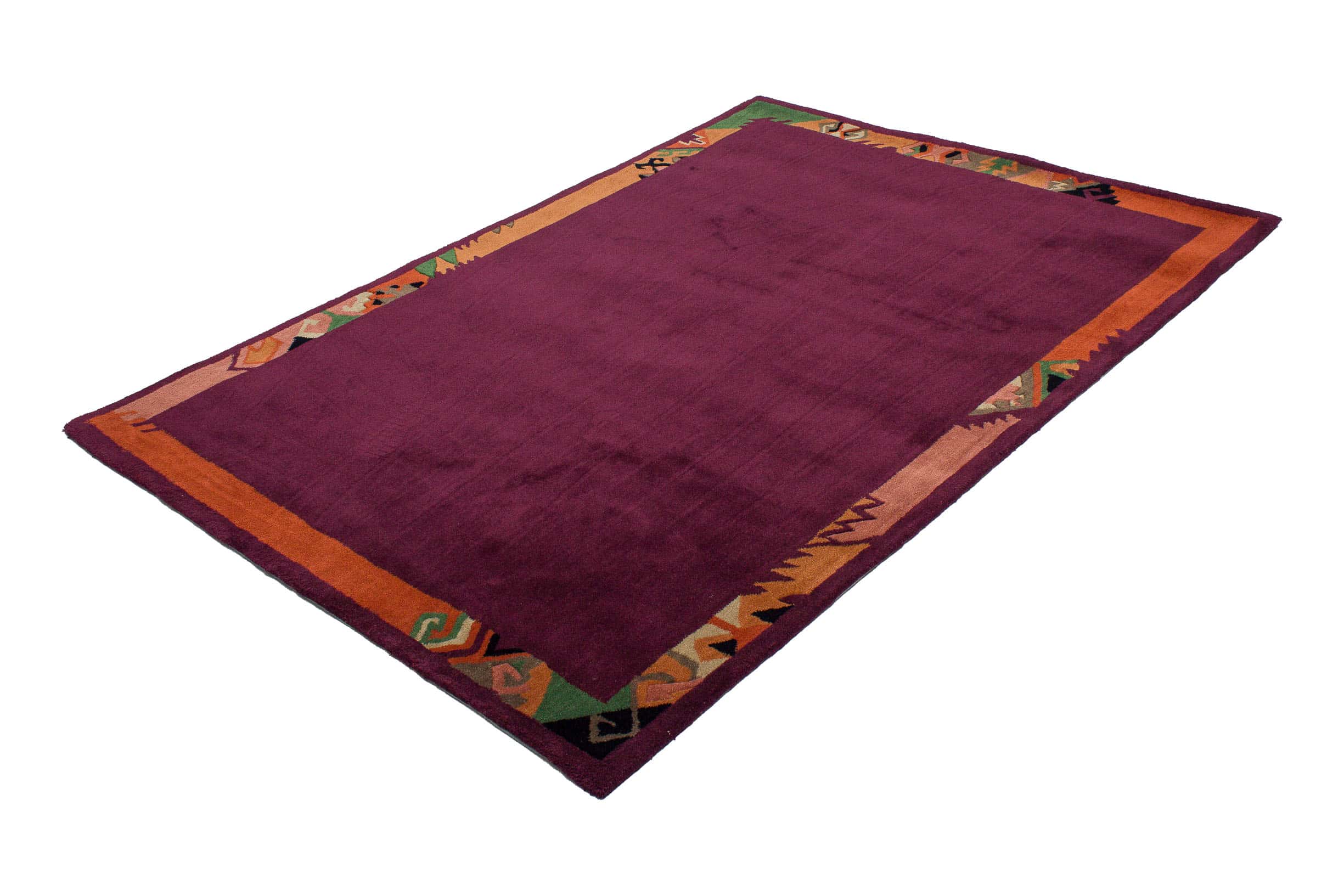Das Muster dieses Teppichs ist mit einer Bordüre umrandet.