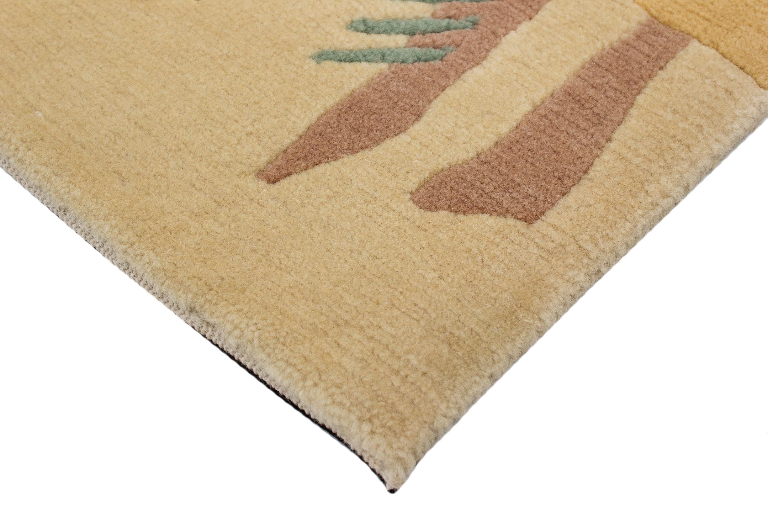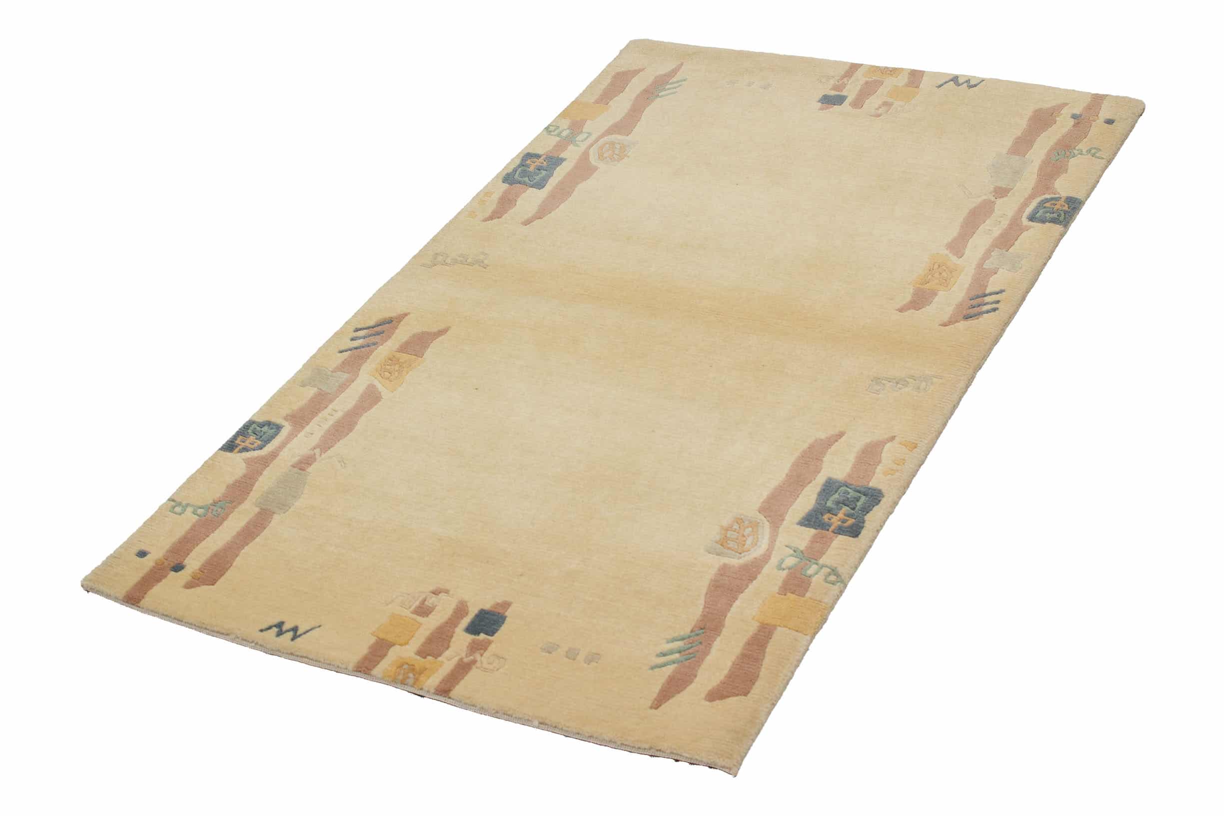 Dieser neue handgeknüpfte Teppich hat eine Breite von 90 cm und eine Länge von 160 cm. Das Circa-Maß dieses Teppichs ist 90 x 160 cm. Es handelt sich um einen echten handgeknüpften Teppich aus Nepal. Der Teppich hat keine Fransen. Der Flor ist aus Schurwolle. Das Muster ist Modern. Dieser Teppich ist für die Nutzung auf Fußbodenheizungen geeignet.