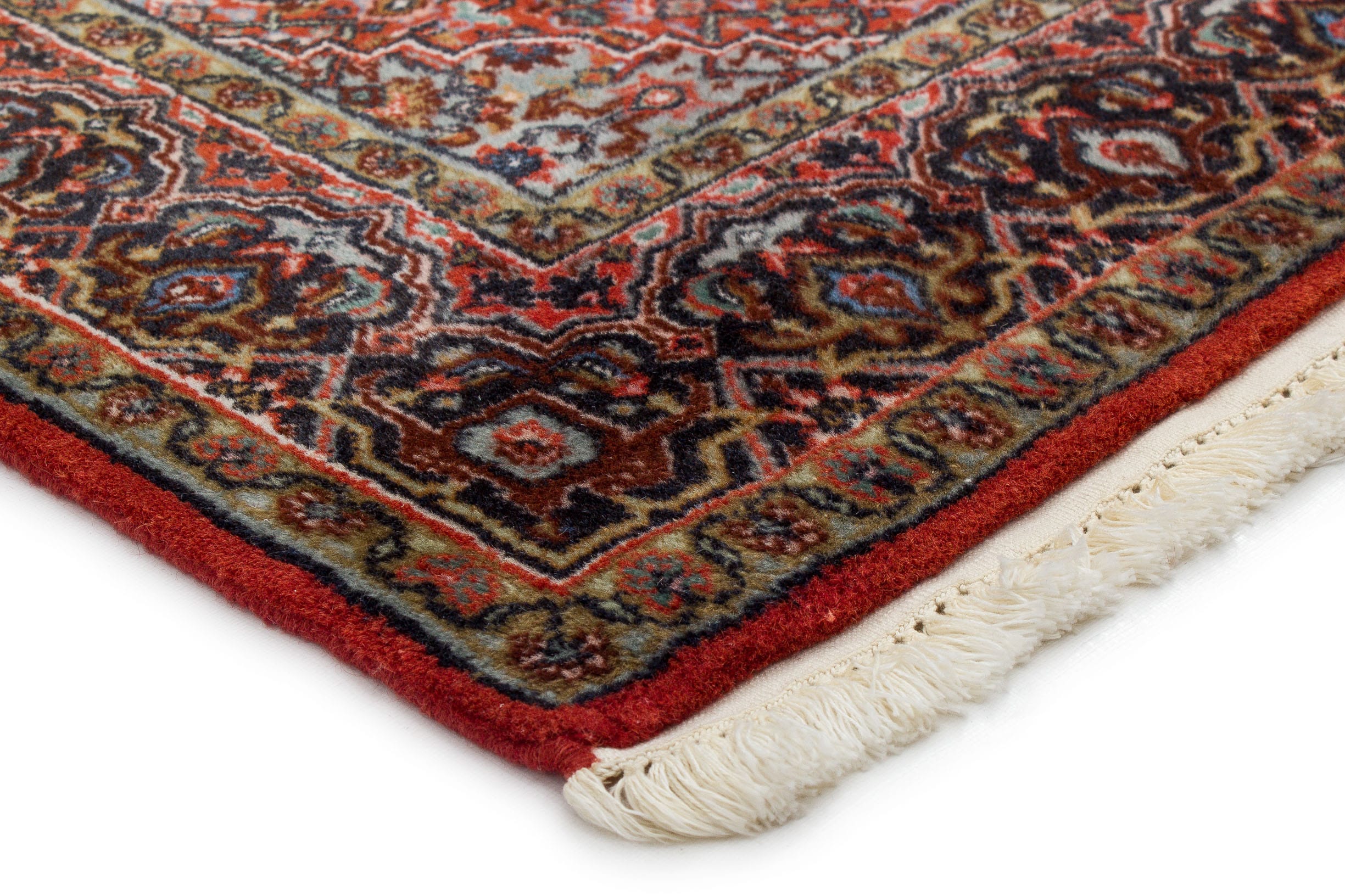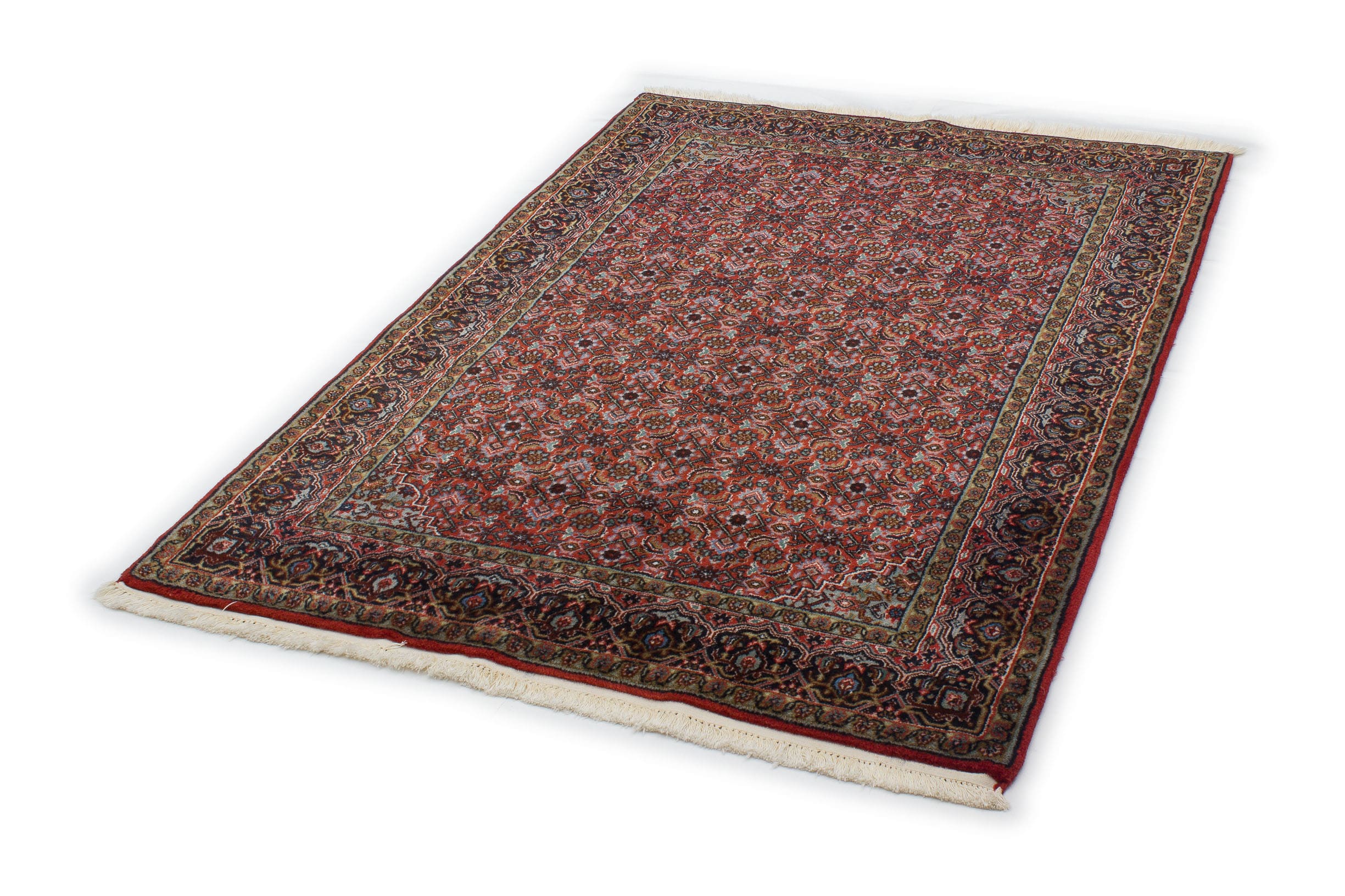Das Muster des Bidjar stammt aus dem Kurdengebiet im Nahen Osten. Die besondere Eigenschaft des Bidjar ist, dass er nass geknüpft wird und dadurch sehr fest und robust wird. Er ist unglaublich strapazierfähig und wird auch als "Teppich für Generationen" bezeichnet. Die Musterwelt ist sehr anpassungsfähig und lässt sich in jeder Räumlichkeit arrangieren. Die robusteste Art der Orientteppiche wird aus erstklassiger Schurwolle hergestellt.