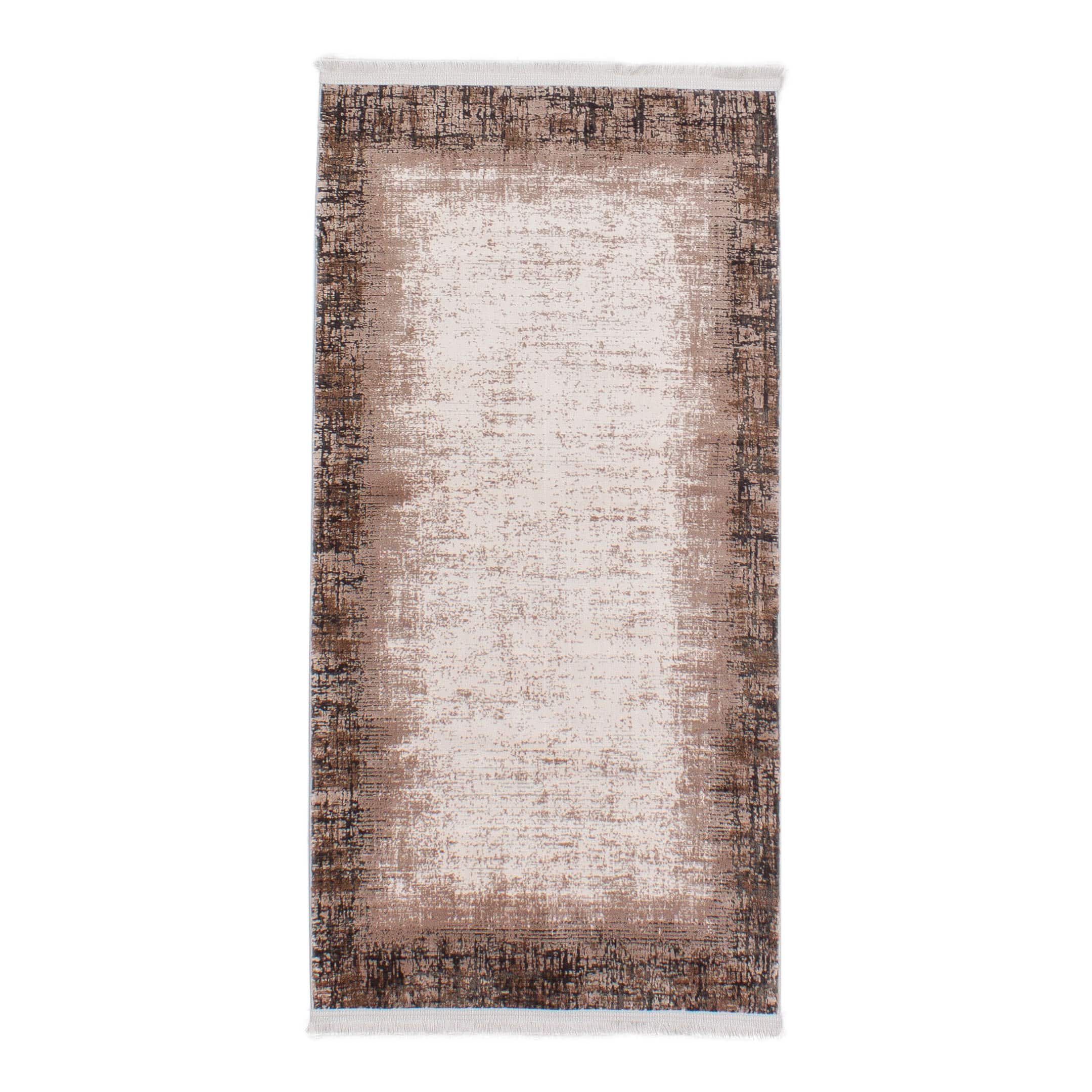 Dieser neue maschinell hergestellte Teppich hat eine Breite von 80 cm und eine Länge von 150 cm. Das Circa-Maß dieses Teppichs ist 80 x 150 cm. Es handelt sich um einen maschinell hergestellten Teppich aus der Türkei. Der Teppich hat Fransen. Der Flor ist aus Viskose (Kunstseide). Das Muster ist Vintage. Dieser Teppich ist für die Nutzung auf Fußbodenheizungen geeignet.